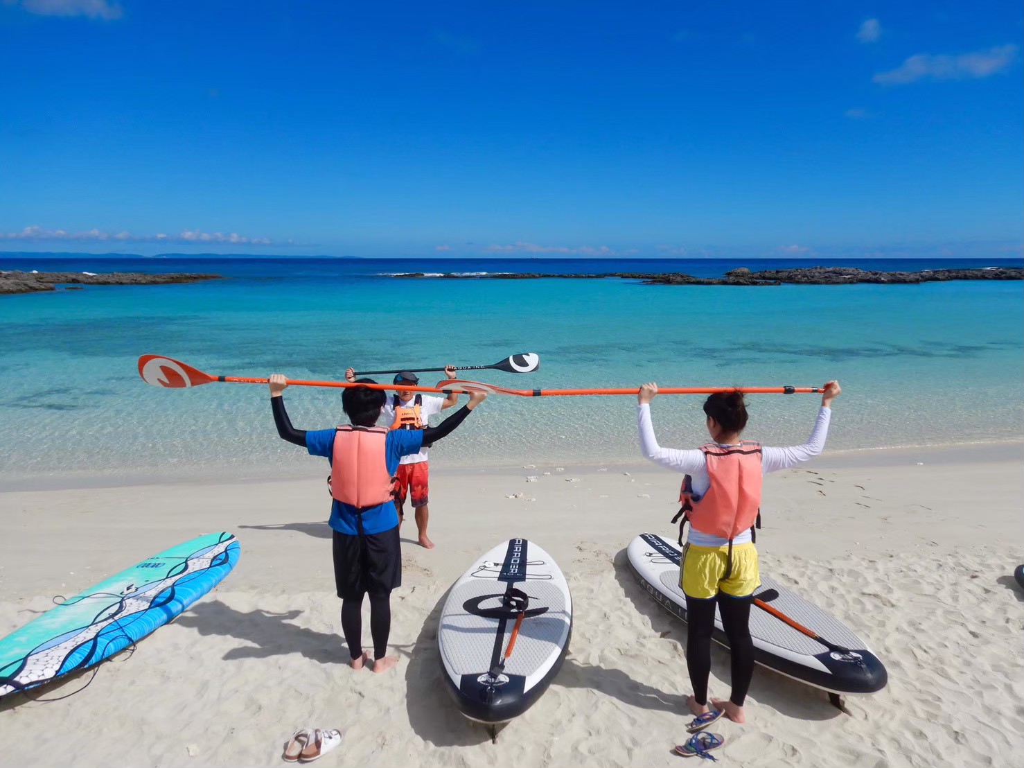 喜界マリンでは、その日の風向きや海況を見ながら、3つのビーチの中から最適なポイントへご案内しています。天候によって中止になる場合もありますが、入江に面した穏やかな海を選べるため、晴れていれば体験できる日が多いのも特徴です。無理に実施せず、安全を最優先に判断。コンディションに合わせた柔軟な対応で、安心して海遊びを楽しめます。